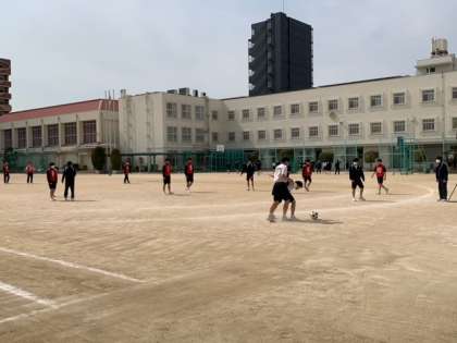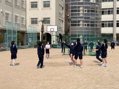 2年生は男子がサッカー、女子がバレーボールをグラウンドで行なっています。
