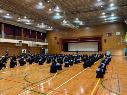 全校集会の後、3年生は身長・体重測定、視力検査です。2限目以降、他学年も行います。今日は4限終了後、給食を食べて下校となります。