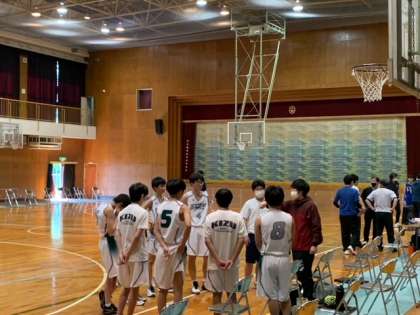 バスケットボール部は星光学院との対戦です。前半終了しましたがリードされています。