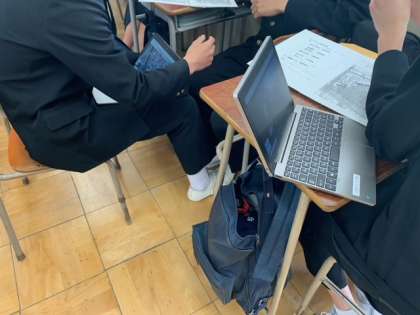 2限目、1人1台端末を使用して、広島での散策ルートを確認しています。いよいよ来週火曜日に修学旅行出発です。