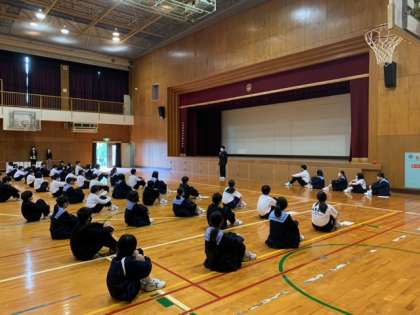 4月25日(月)全校集会を行いました。今週4日頑張ると金曜日からゴールデンウィークに入ります。アッと言う間に4月も終わります。1日1日大切に過ごしましょう!