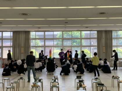 今日(25日)3年生は、明日からの修学旅行の事前準備をしています。食堂で集合の体型等を確認しています。