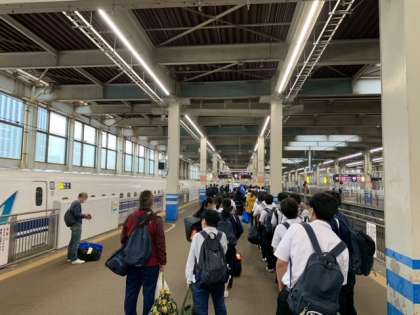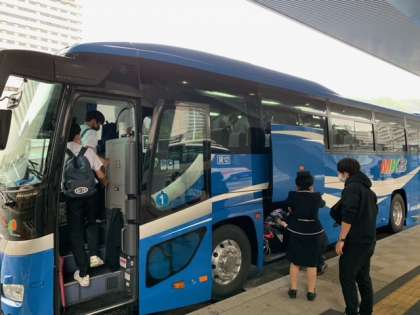10時27分広島駅到着です。バスで移動します。残念ながら雨が降っています。