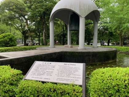 平和の鐘です。第二次世界大戦で使用された武器を溶かして作ったそうです。この時期あまり咲いていないらしいのですが今日はハスの花も咲いています。