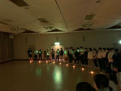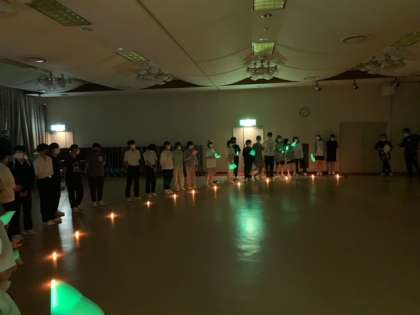 スタンツは終了しましたが場所を移動し、キャンドルライトの灯りの中、今回の修学旅行のテーマソング、back numberの水平線を全員で歌いました。