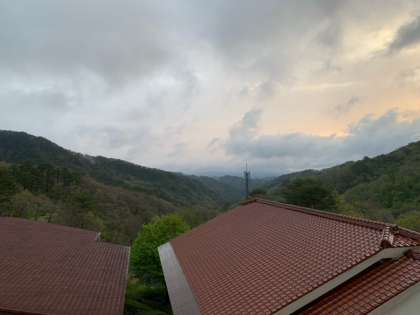 おはようございます。2日目の朝を迎えました。窓を開けると「ホーホケキョ」というウグイスの鳴き声やたくさんの鳥の鳴き声が聞こえてきます。昨日降り続いた雨も上がりました。