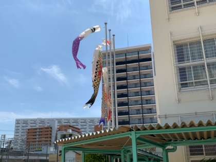 5月に入りグラウンドの掲揚ポールには、鯉のぼりが元気に泳いでいます。