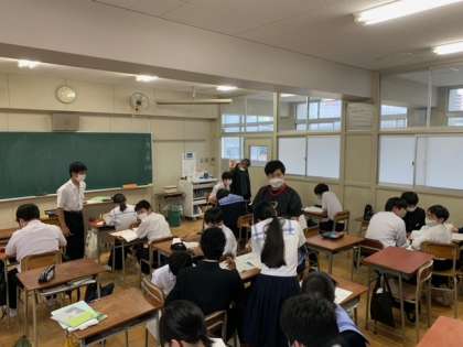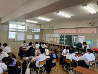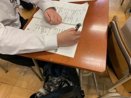 13日(金)の校外学習では、班ごとに1日乗車券を使って市内を回ります。どんな回り方をするか、班で作戦を練っています。