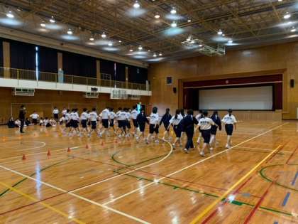 2年生は体育館で集団行動の練習です。体育大会では2、3年生が集団演技を行います。昨年は先輩たちの演技に感動しましたが、今年は自分たちの番だと気合が入っています。