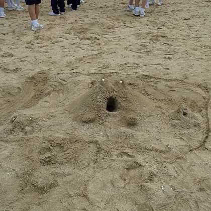 サンドアート、最優秀作品は2組1班で作品名「ネコ」。