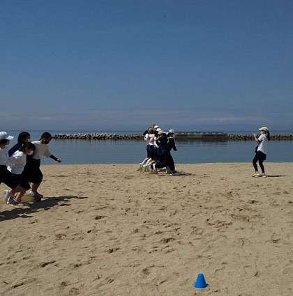 次のプログラムは、6人7脚競走です。息をあわせて足並みを揃えるのが難しそう。