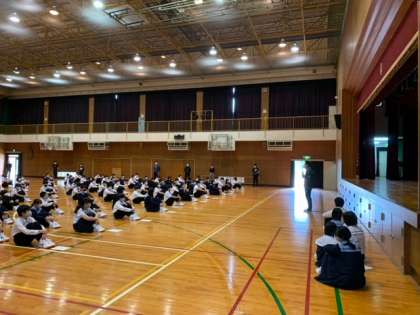 全校集会です。19日(木)から中間テストとなります。修学旅行、校外学習、一泊移住が終わりました。各学年とも集中して頑張りましょう!