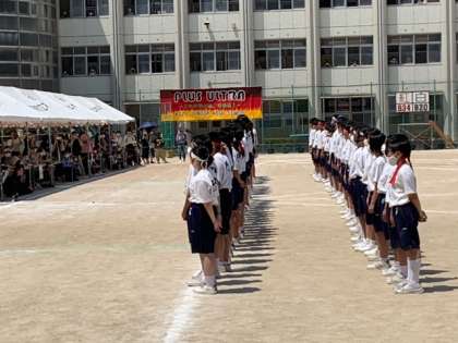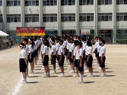 2、3年の集団演技が始まりました。整った隊列変換に保護者や応援席の1年生から拍手が起こっています。