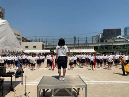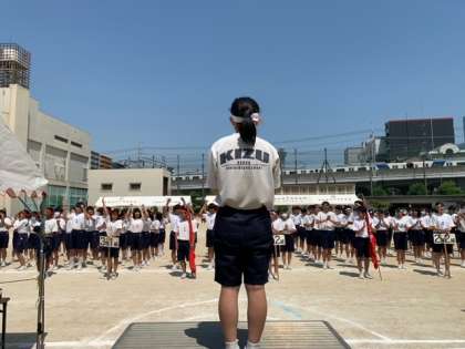 閉会式です。接戦の上、今年は1組(赤組)の勝利です。どちらも最後まで全力で戦いました。