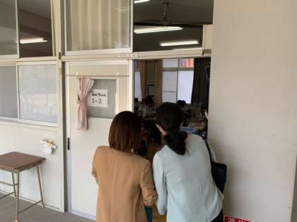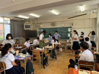 今日は難波元町小学校の先生方に来ていただき、給食の様子も見ていただきました。突然のお世話になった先生方の登場に、難波元町小学校を卒業した生徒たちは興奮していました♪