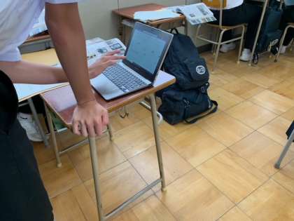 1人1台パソコンで各自学習をしています。明日(15日)は第1回目の実力テストです。