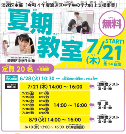 浪速区主催「令和4年度浪速区中学生の学力向上支援事業」