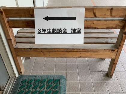 3年生の懇談は、もちろん進路選択の話が多くなります。控室は教室手前の部屋になりますが、進路の資料を置いていますので、どうぞご覧ください。