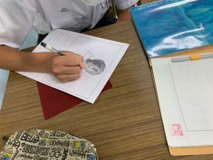 点描画を描いています。黙々と作業をしていますが、みんな中々上手です。