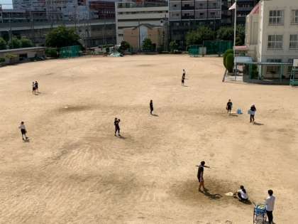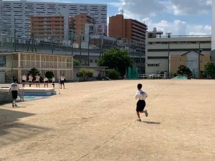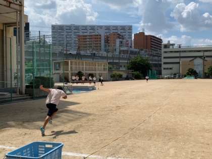 グラウンドでは、陸上部とソフトボール部が汗を流しています。