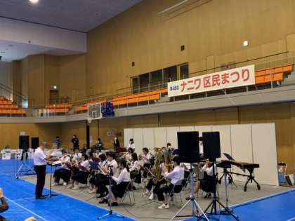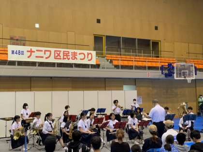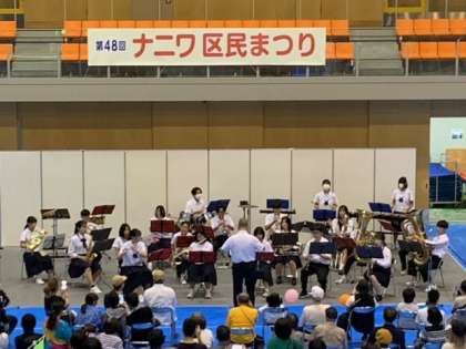 10月2日(日)区民まつりが開催され、本校の吹奏楽部は今宮高校と合同で演奏しました。