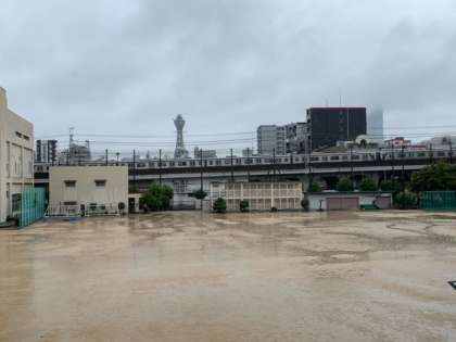 朝から雨が降っており、あべのハルカスも雲で隠れています。