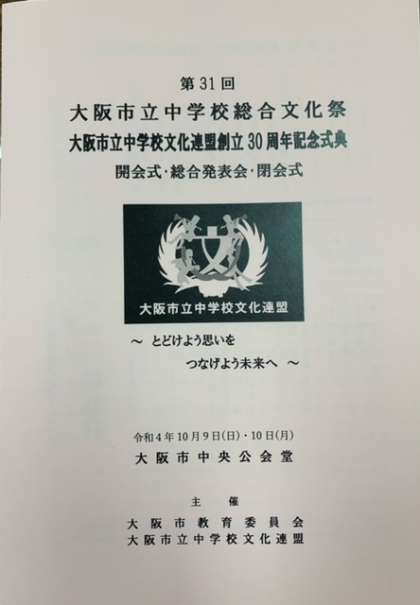 明日から三連休ですが、10月9日(日)・10日(月)に大阪市立中学校総合文化祭が開催されます。