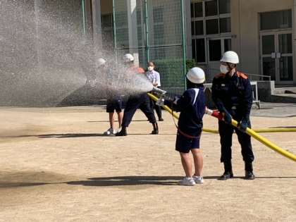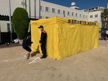 煙テント体験、水消火器操作訓練、可搬式ポンプ操作訓練です。