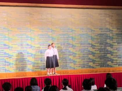 10月21日(金)9時に始まりました。生徒会長による開会宣言の後、生徒会役員から「なにわ子ども人権文化祭」の意義について説明がありました。