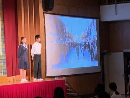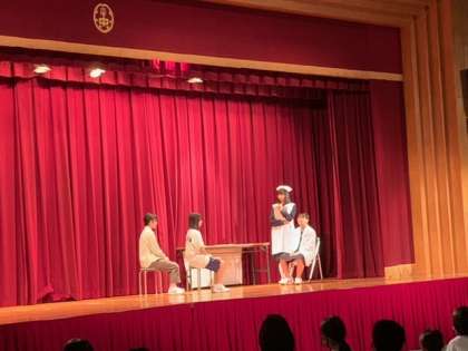 3年生は、4月に広島へ修学旅行に行きました。その時の思いを「千羽鶴」と言う劇にしました。
