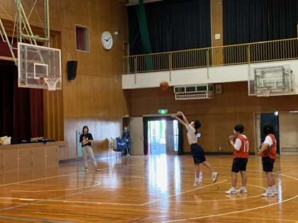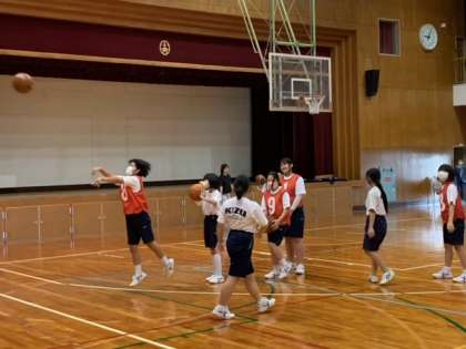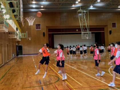 1限目、1年生の保健体育は男女ともバスケットボールです。楽しそうに体を動かしています。