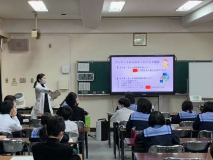 7日(月)6限、養護教諭による研究授業を「スマホやネットとの上手な付き合い方を考えよう」という内容で実施しました。