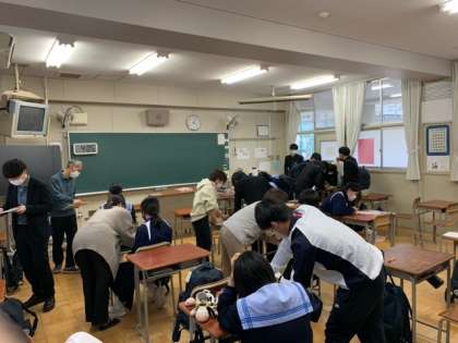 今日は数学、たくさんの先生が教室に来てくれています。みんな集中しています。