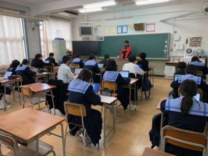 5限目は期末テストの反省とパソコンで各種アンケートを行なっています。