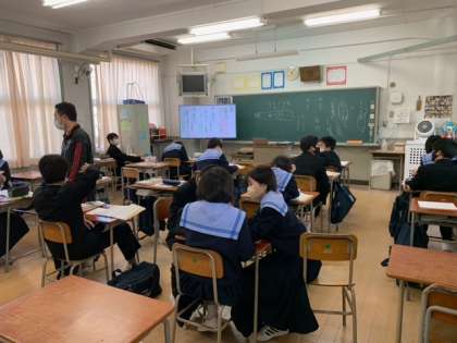 ワークをどんどん解いています。わからないところは友だちに聞いてみんなで考えています。