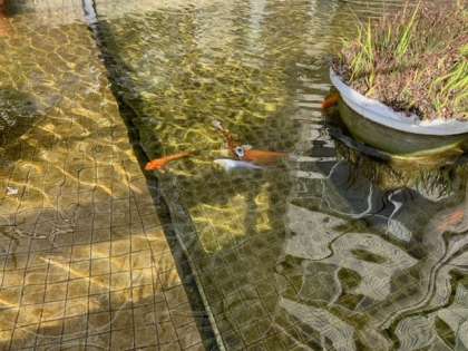 本校の元校長先生からいただいた鯉たちが、冷たい池の中を元気に泳いでいます。