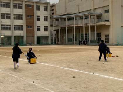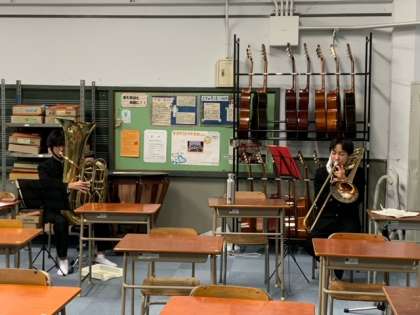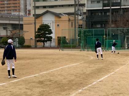 雨が降りそうです。部活動頑張っています。写真上から野球部、ソフトボール部、吹奏楽部の練習の様子です。