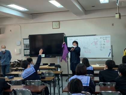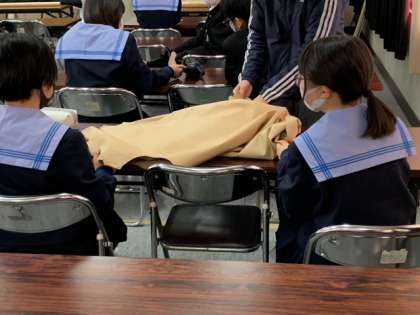 シューネクスト様から講師の方に来ていただき、「皮」についてのお話と実際に小さな靴作りをさせてもらっています。