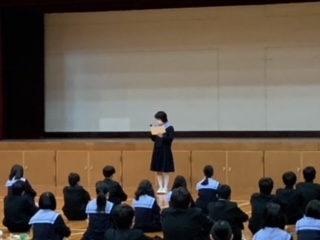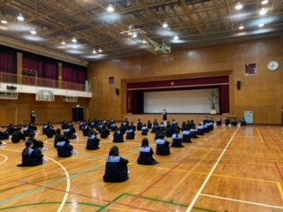 20日(月)全校集会を行いました。3年生が卒業し1、2年生だけになりましたが、これからの木津中は任せました。よろしくお願いします。