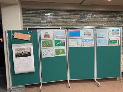 写真は、玄関に飾っているパソコン部作成の入学お祝い制作です。