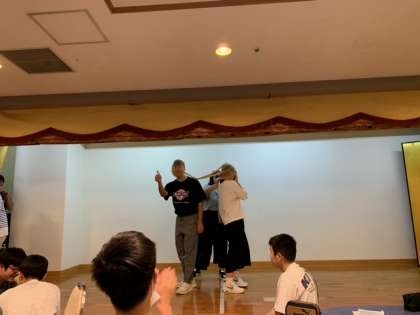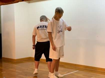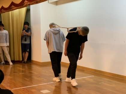 真面目な発表の後、またレクレーションが始まりました。パンスト相撲です。
