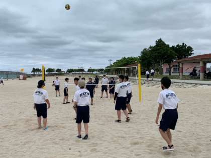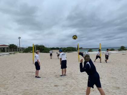 ビーチバレー練習中です。風が強いのと砂に足が取られるので続きません。