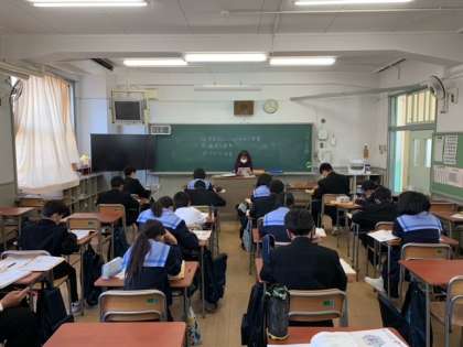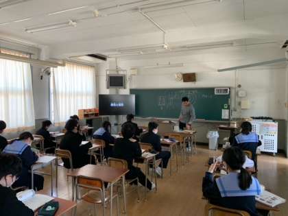 1年生の技術と家庭科の授業です。1クラスを2つに分けて授業を行なっています。