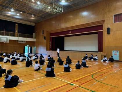 全校集会では、校長先生から今日の主旨、生徒指導主事から、いじめの定義等の話がありました。