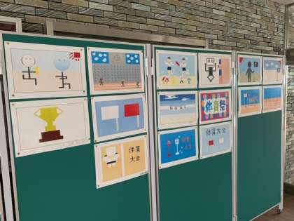 玄関にあるパソコン部の体育大会に関わる作品です。