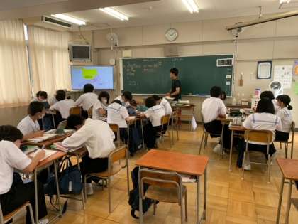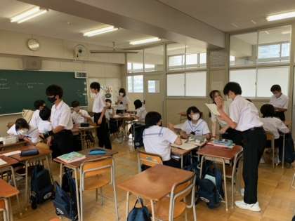 どちらも机を班にして、生徒が主体的に授業を進めています。