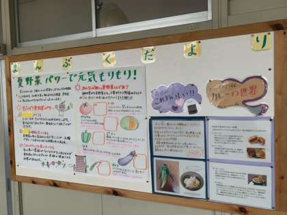 栄養教諭さんが、「まんぷくだより」に書いてくれていますが、きゅうりなどの夏野菜パワーで元気に頑張りましょう。
