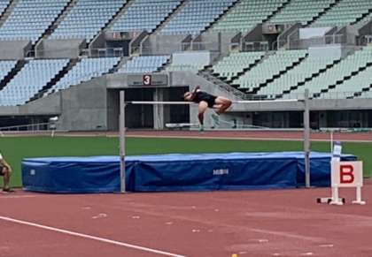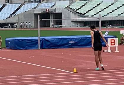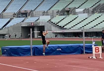 9日(日)ヤンマースタジアム長居陸上競技場で行われた通信陸上大会で、本校の3年生が走高跳で全国大会出場を決めました。