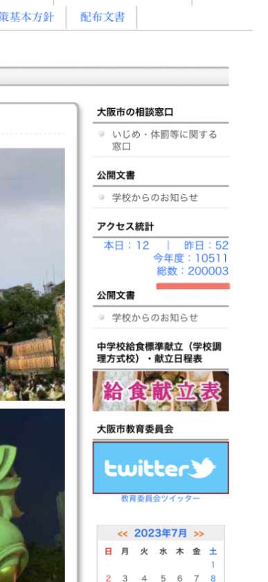2013年4月に大阪市立学校園のこの形のホームページがスタートしました。そこから10年と少しでこれだけたくさんの方々に木津中学校の様子を見ていただき誠にありがとうございました。これからも子どもたちの活躍や学校の様子をアップしていきますので、引き続き木津中学校の応援をよろしくお願いいたします。