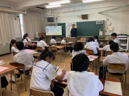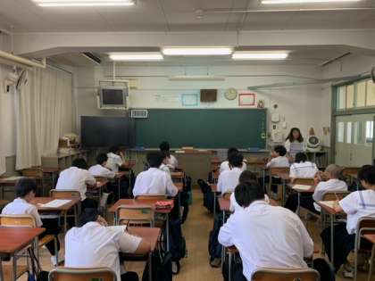 1クラスを半分に分けて授業です。写真上が技術、写真下が家庭科の授業です。